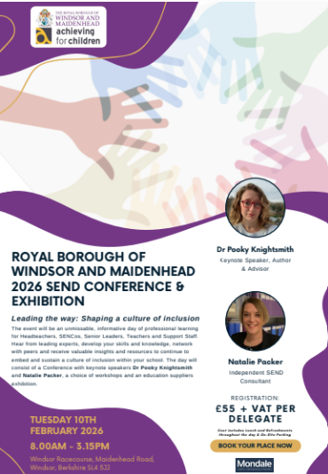 The RBWM SEND Conference will be an informative day of professional learning for Headteachers, SENCos, Senior Leaders, Teachers and Support staff.